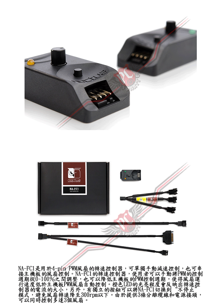 NA-FC1是用於4-pin PWM風扇的轉速控制器,可單獨手動減速控制 |
