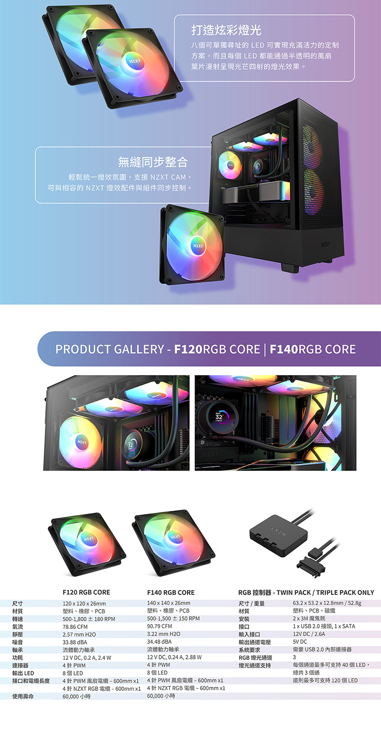 | 型號 | NZXT F120 RGB Core 核心扇 |