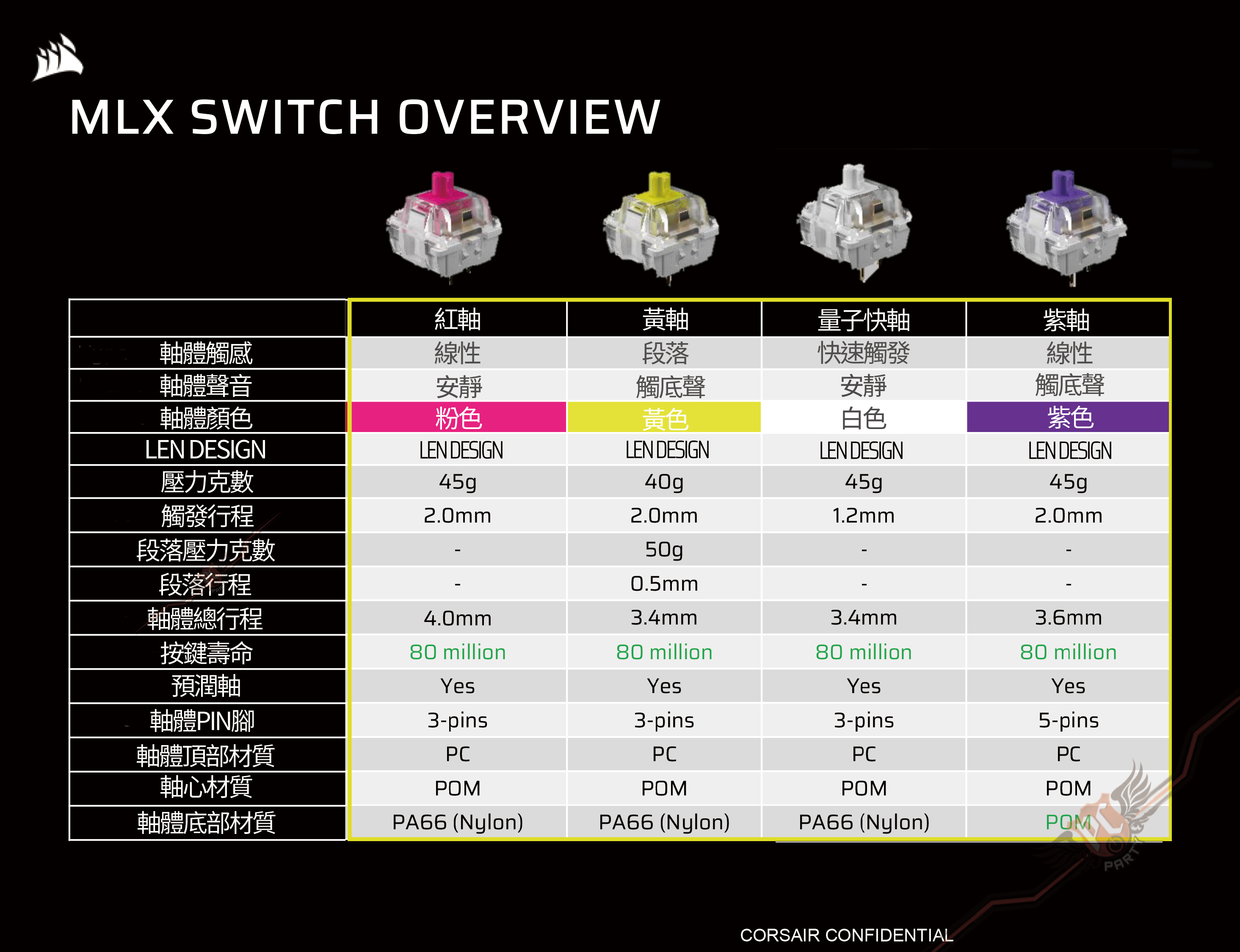 | 機械開關 | CORSAIR MGX V2(磁性 / 霍爾效應) |