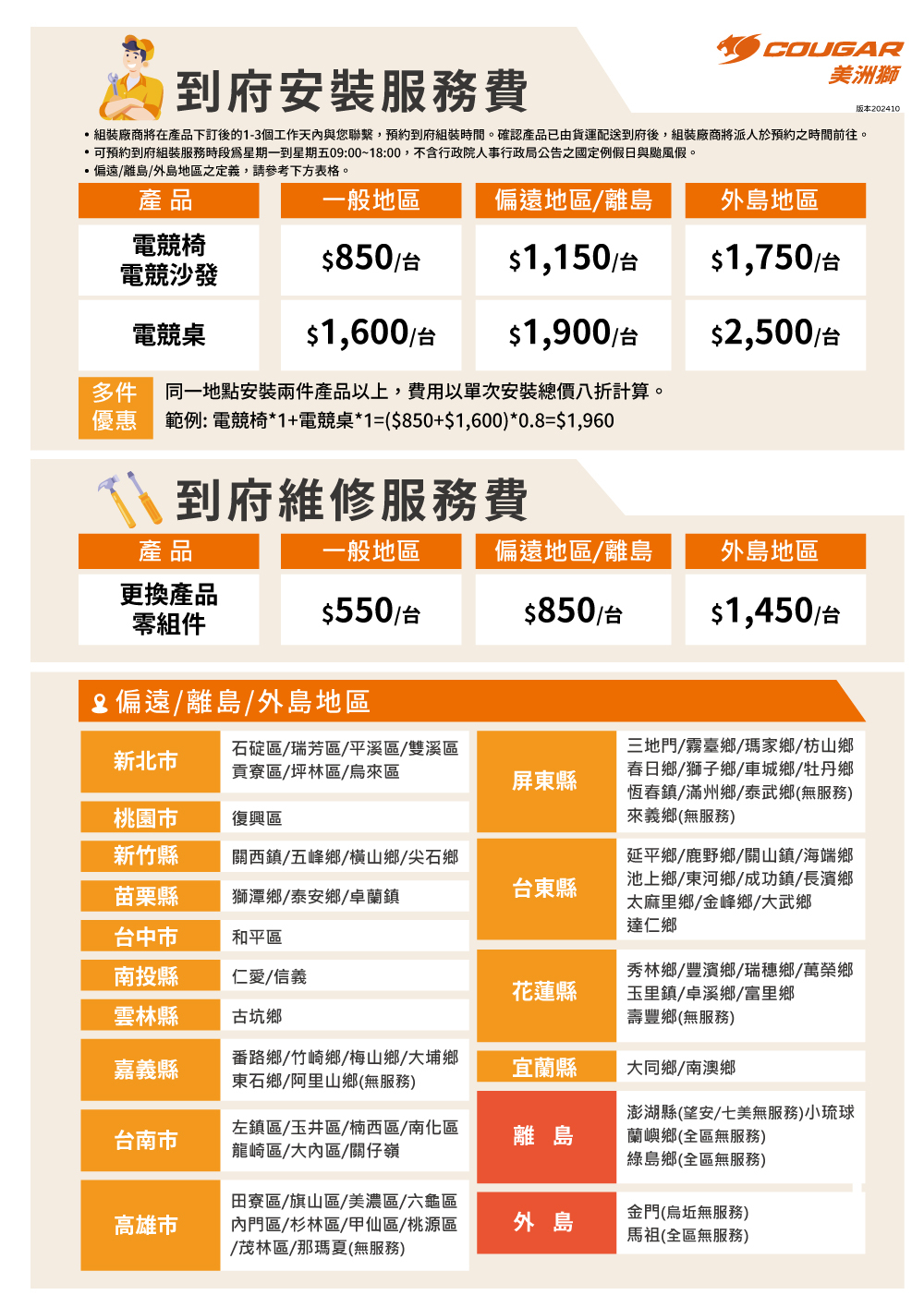 ⚠️大型物件(電競桌椅沙發)如迫切需求在週六送達,需要額外加價服務費250元。