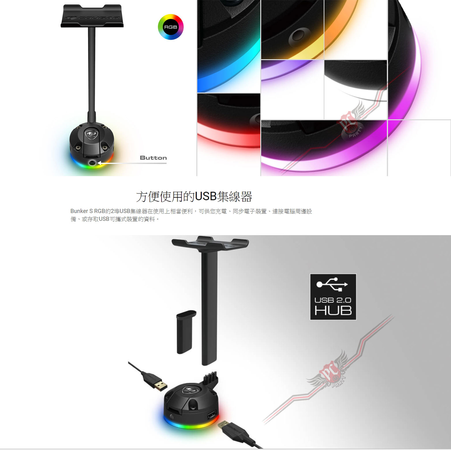 當您不使用耳機時,不曉得該放置何處嗎?您需要更多USB插孔嗎?想為您的電競裝備增添閃耀RGB燈效嗎?Bunker S RGB耳機架就是電競玩家必須擁有的專業配備