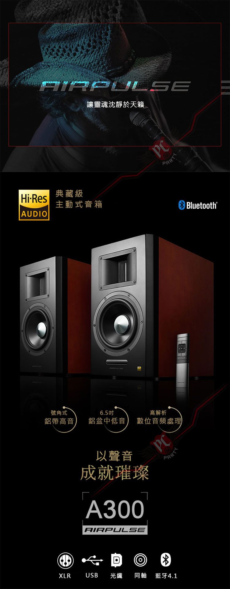 AIRPULSE A300 2.0聲道 藍牙喇叭音響號角式負載鋁帶高音