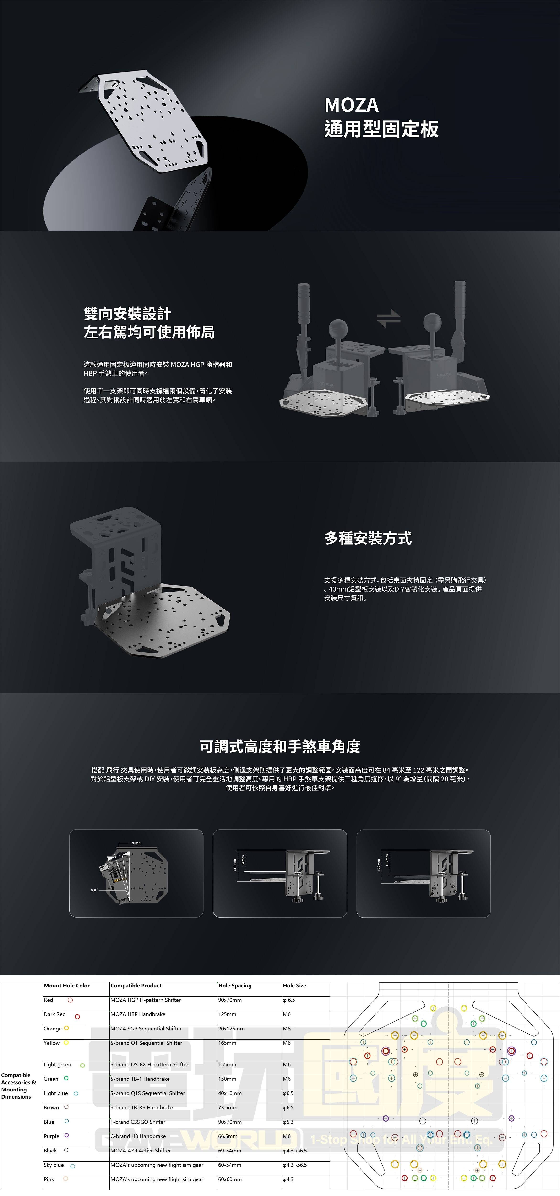 | 型號 | 通用型固定板 + 桌面夾 |