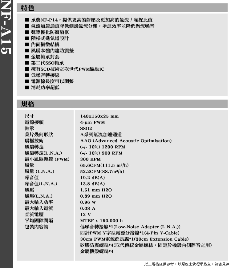 •承襲NF-P14,提供更高的靜壓及更加高的氣流/噪聲比值