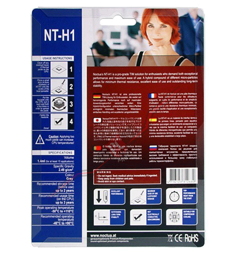 Noctua's NT-H1 散熱膏是頂尖高手玩家所需要使用到的產品, 可以安心的達成, 由數種微小粒子所混合成的 NT-H1造就最小的熱阻, 並能維持長時間的穩定性. 效能最佳(Excellent performance) 容易使用途抹且有效率(Maximum ease of use & efficient dosage) 剛塗抹下去即達到最好的效能(Top-performance right from the start) 長效穩定性極佳(Excellent long-term stability) 不導電也不沒有腐蝕性(Not electrically conductive, non-corroding) |