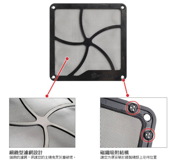 | ◆ 方便的磁鐵吸附機構。 ◆ 細緻風扇濾網,隔絕灰塵進入機殼內部。 ◆ 泛用性高,可涵蓋大部分14公分以下出風口。 |
